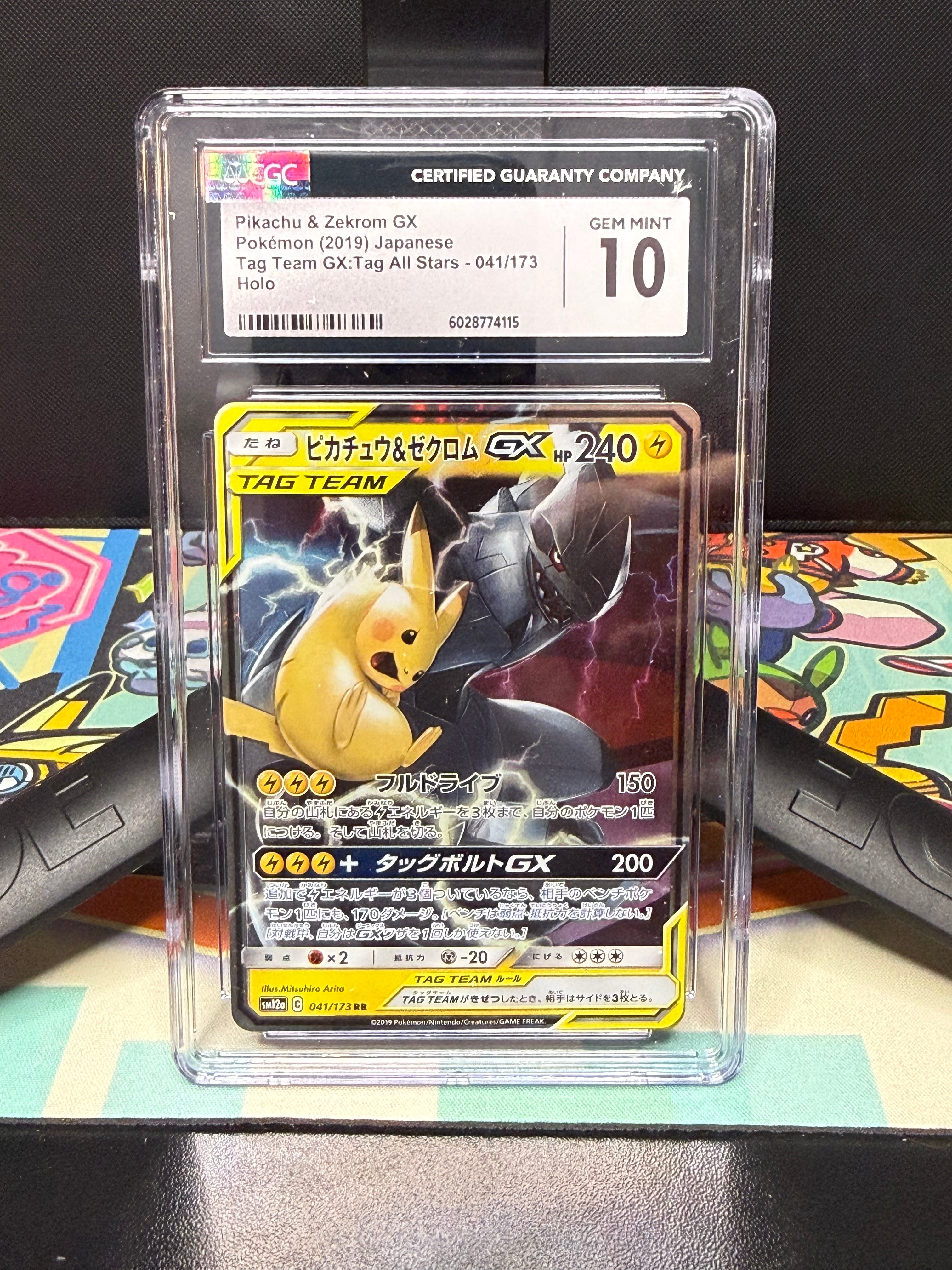 CGC 10, Pikachu & Zekrom GX Pokémon (2019) Japanese Tag Team GX: Tag All Stars - 041/173 Holo