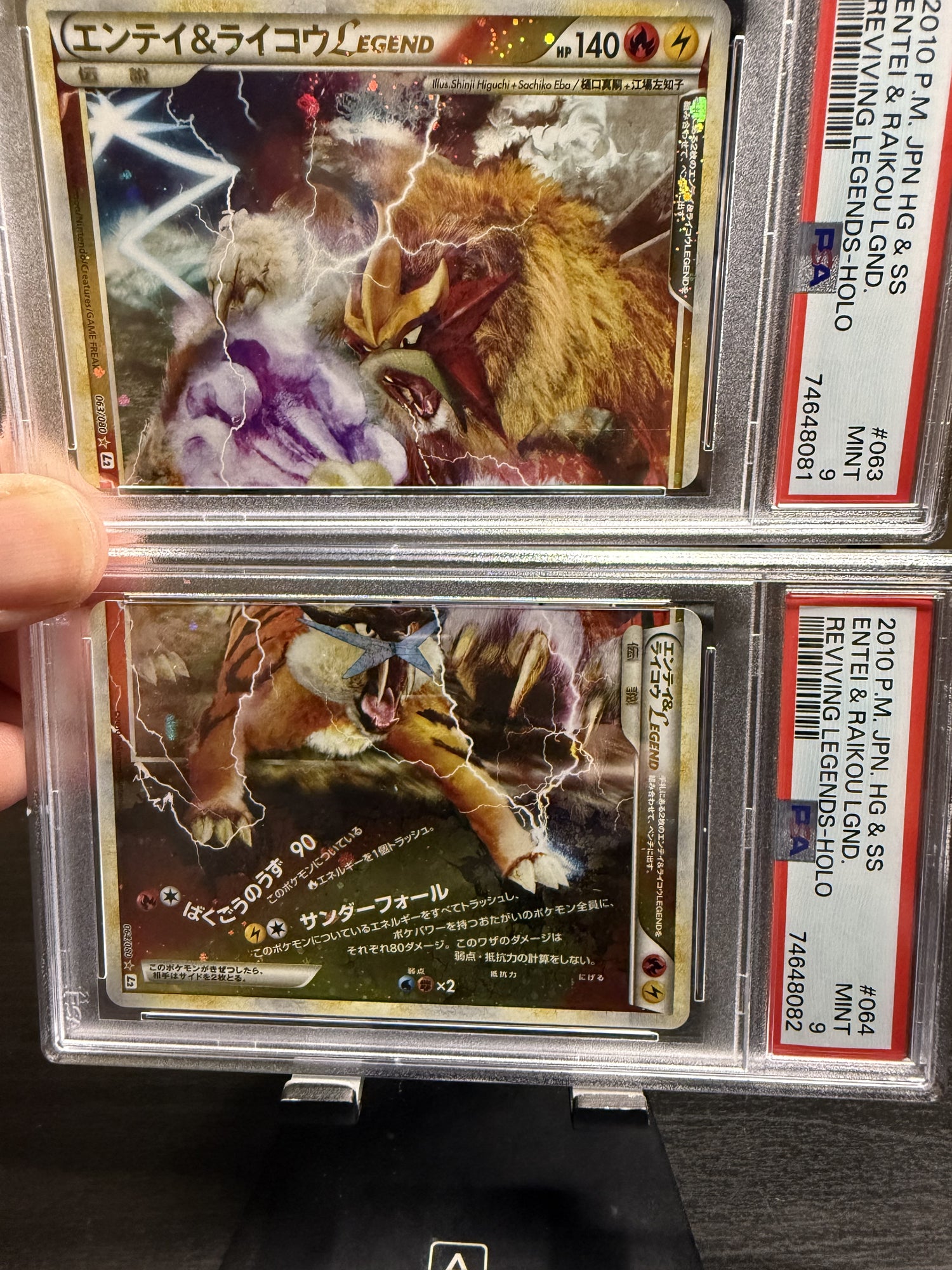 Entei & Raikou Legend #63 & #64, PSA 9, Reviving Legends